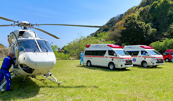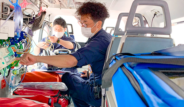 ドクターヘリには医師と看護師が搭乗しているので、ヘリが到着し患者さんと接触した時点から病院と同じように診療が始まります。