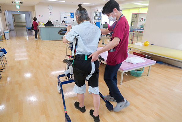 集中治療室内など発症早期から座位・立位・歩行練習を個々の患者さんの状態に合わせて積極的に実施し、身体機能の改善を促しています。