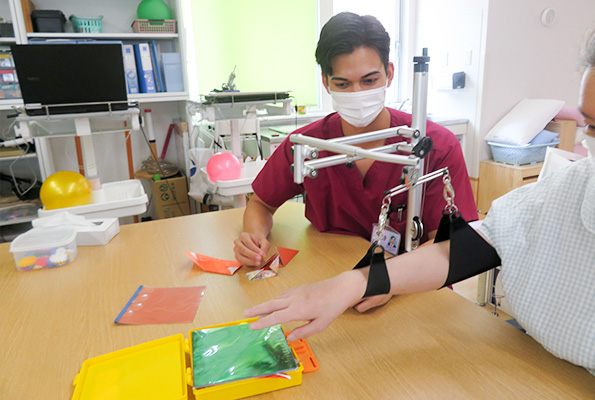 作業療法とは、身体や心に障害をおってしまった患者さんに対して、基本動作や応用動作獲得、上肢機能改善を、主に作業活動を通して実施する治療です。