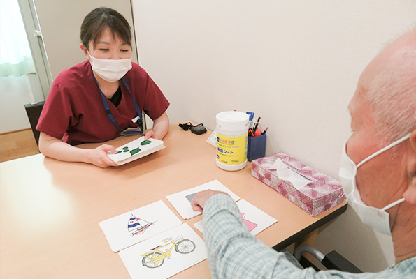 発症早期から食事・排泄動作を始めとしたADLや趣味・家庭内役割(家事・仕事など)の練習、援助を行い、在宅や社会復帰、QOLの向上を図っていきます。