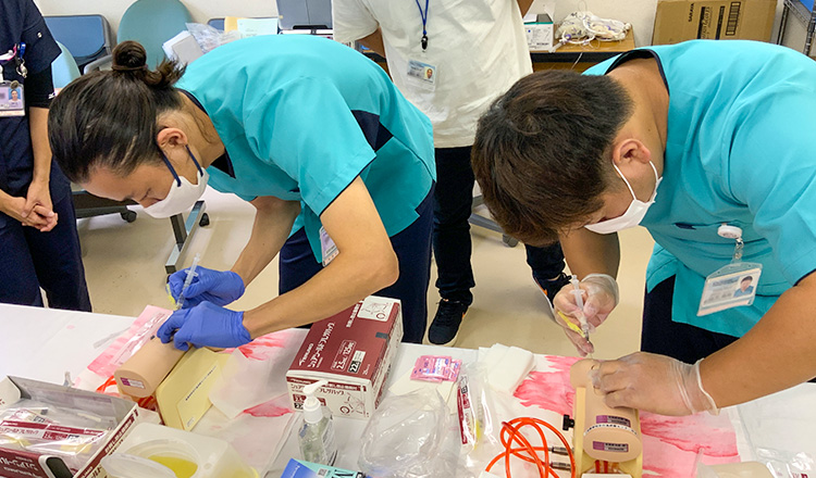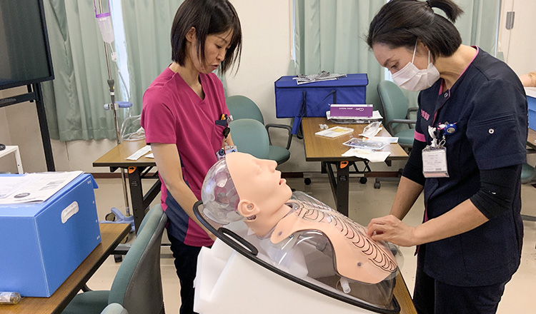 当院では厚生労働省から認可を得て、2020年4月に看護師特定行為研修センターを立ち上げ、特定看護師の育成を開始しました。本研修センターでは、1年間かけて働きながら研修可能であり、スクーリング(通学)を最小限にしたカリキュラム構成とし、大学病院ならではの充実した教育スタッフなど種々の特色を有しております。静岡県東部地域の看護師のレベルアップとともにキャリアアップにもつなげていきたいと考えておりますので、急性期から在宅まで地域医療に携わる看護師の皆様のご応募をお待ちしています。