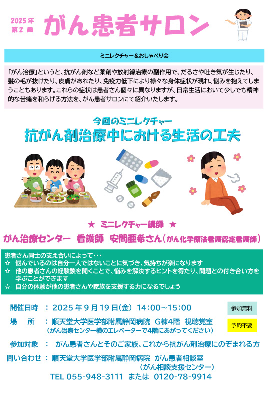 参加対象 | がん患者さんとそのご家族、これから抗がん剤治療にのぞまれる方 |