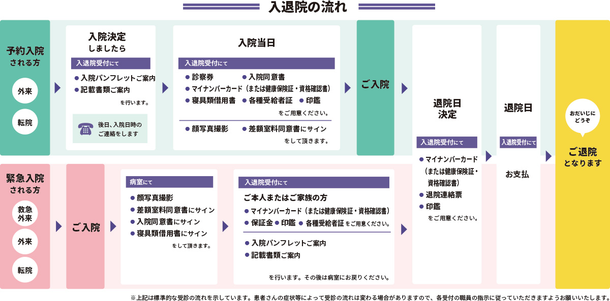 - 入院当日は、ご連絡した入院時間に入院受付・入退院会計にお越しください。