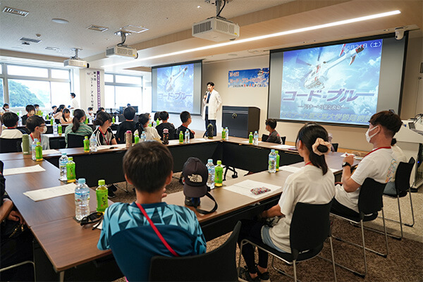 当日は300人以上の応募から抽選で選ばれた36人の小中学生が参加し、医療体験を通じて救急医療に携わる医師・看護師・スタッフと交流をしていただきました。