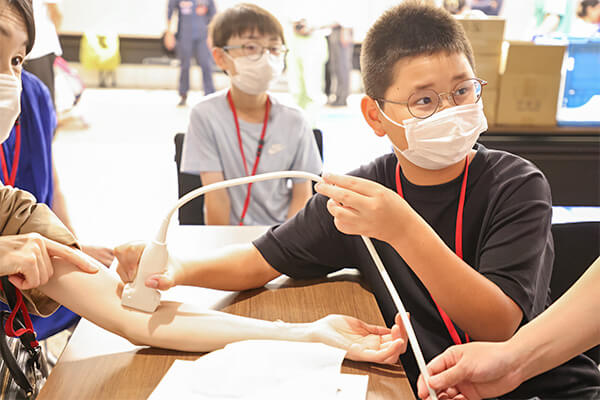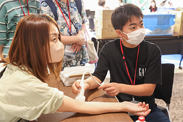 「肝臓」ってここにあるんだ!血管が脈打っている!そんな声が飛び交ったエコー体験。自分の体の中を覗く不思議な感覚は生まれて初めての経験でした。